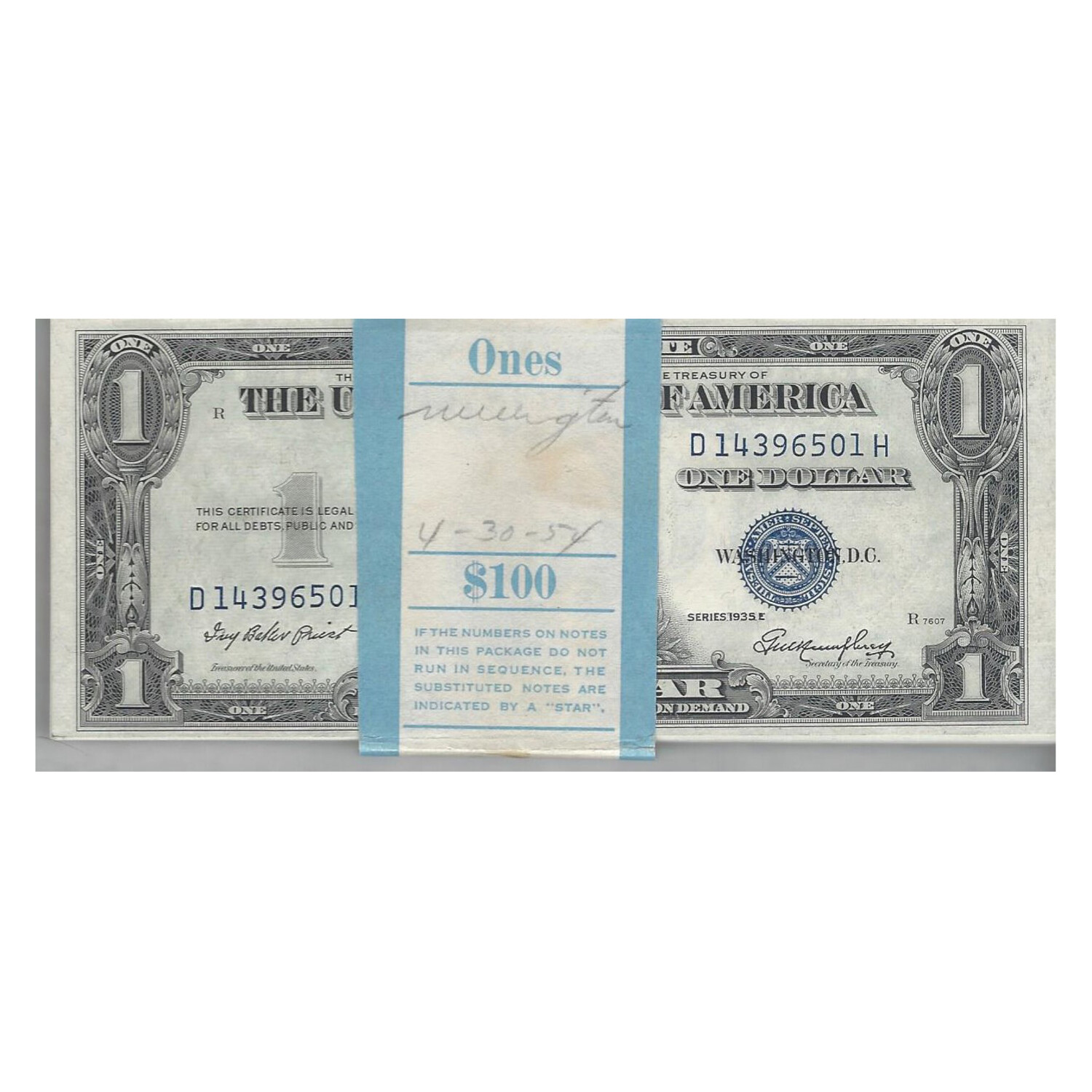 1935 E $1 Silver Certificates Pack Gem Uncirculated // Pack of 100 // # 501-600