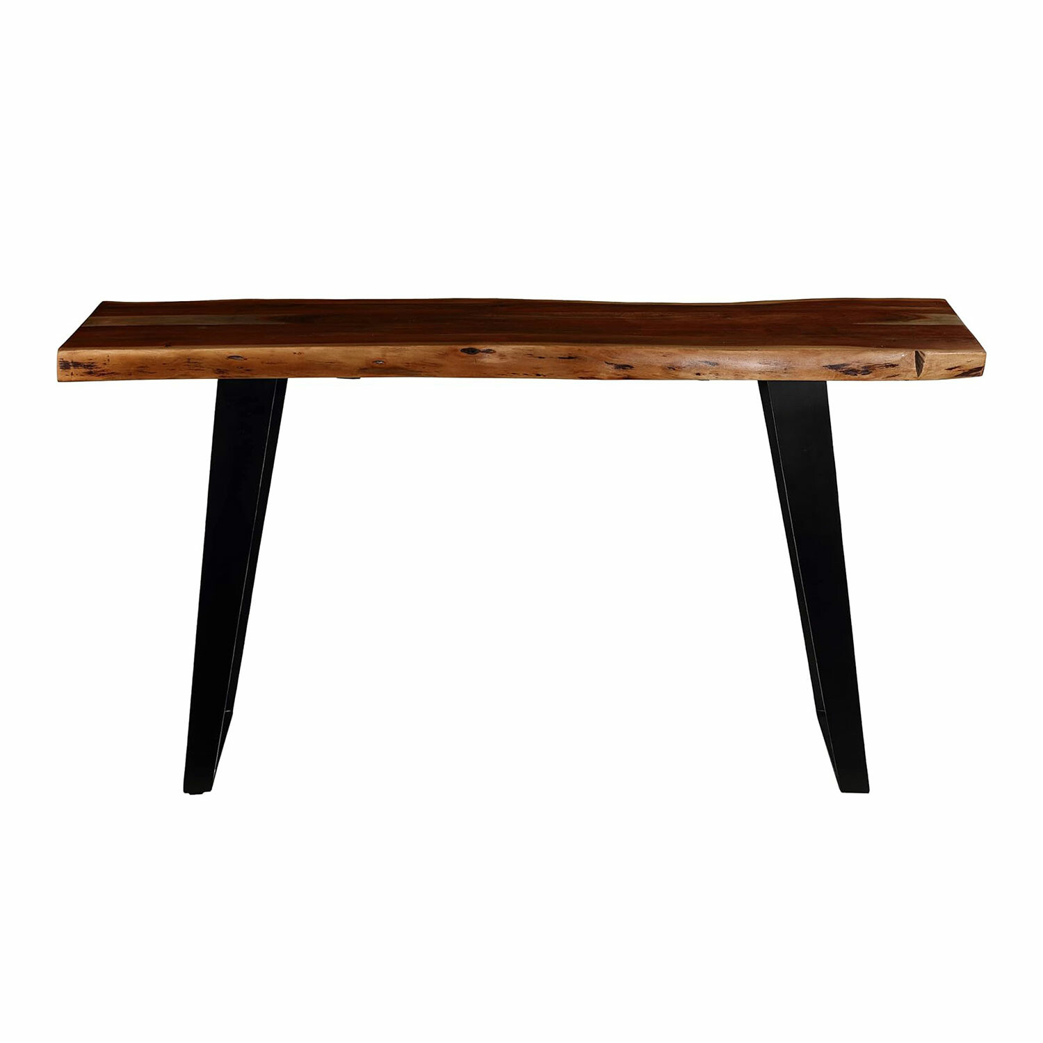 Bare Decor Yukon Console Table in Solid 2" Slab of Wood with Live Edge, Metal Legs in Black