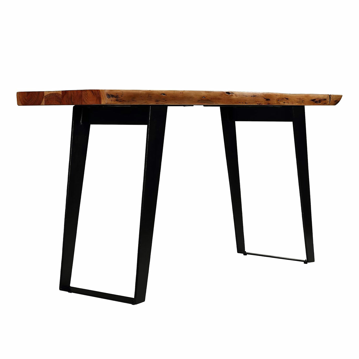 Make a bold statement with the Bare Decor Yukon Console Table. Crafted from a solid 2" thick slab of acacia wood with a live edge, this piece showcases the raw beauty and organic shape of the wood grain. Black-finished metal legs provide modern contrast and sturdy support, blending rustic and contemporary styles in a functional design that works in any space.