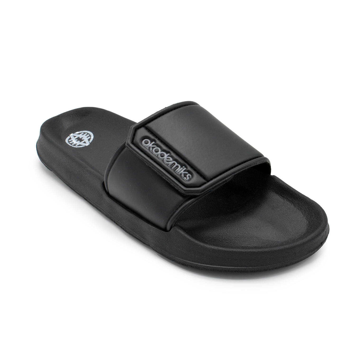 Akademiks Men's Velcro Strap Slides // Black + Gray (10 M)