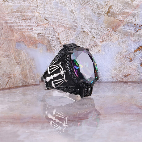 925 Sterling Silver Mystic Topaz Stone With Scale of Justice Men's Ring // Silver + Purple + Green + Blue