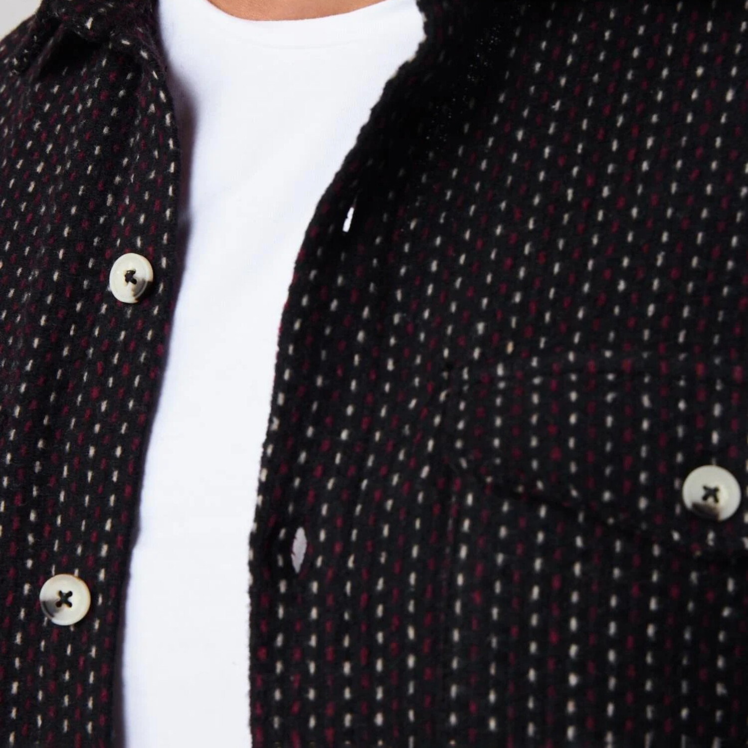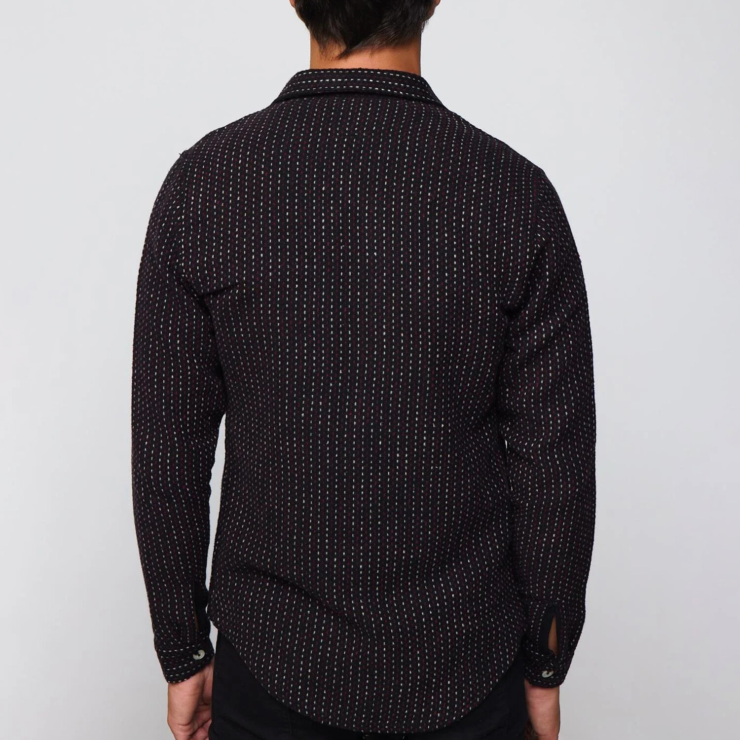 Slim Fit Striped Double Flap Pocket Shirt // Black + White + Burgundy